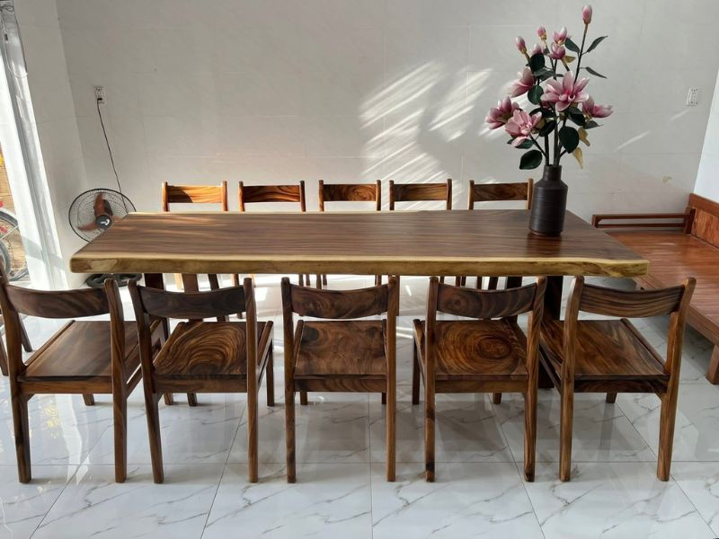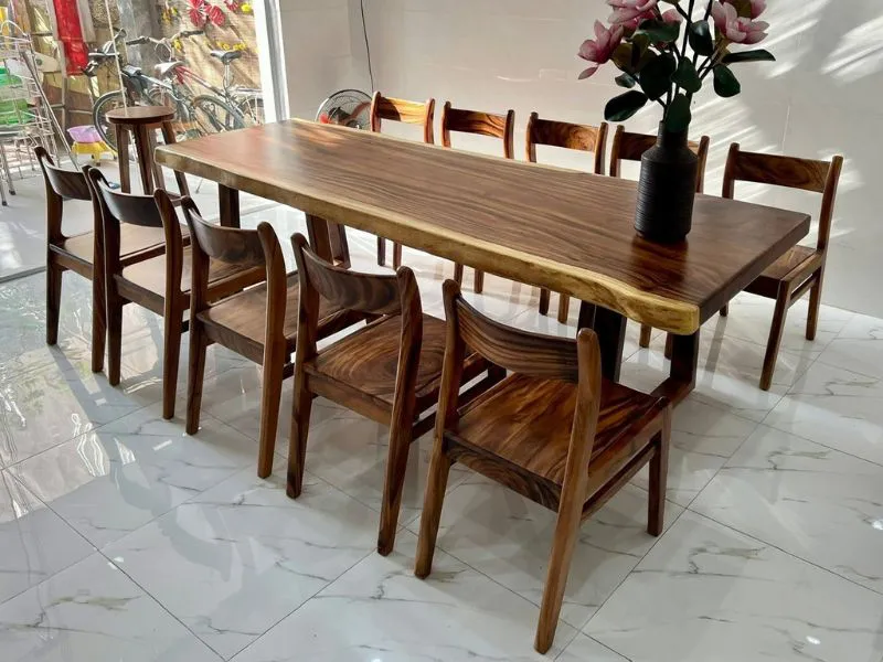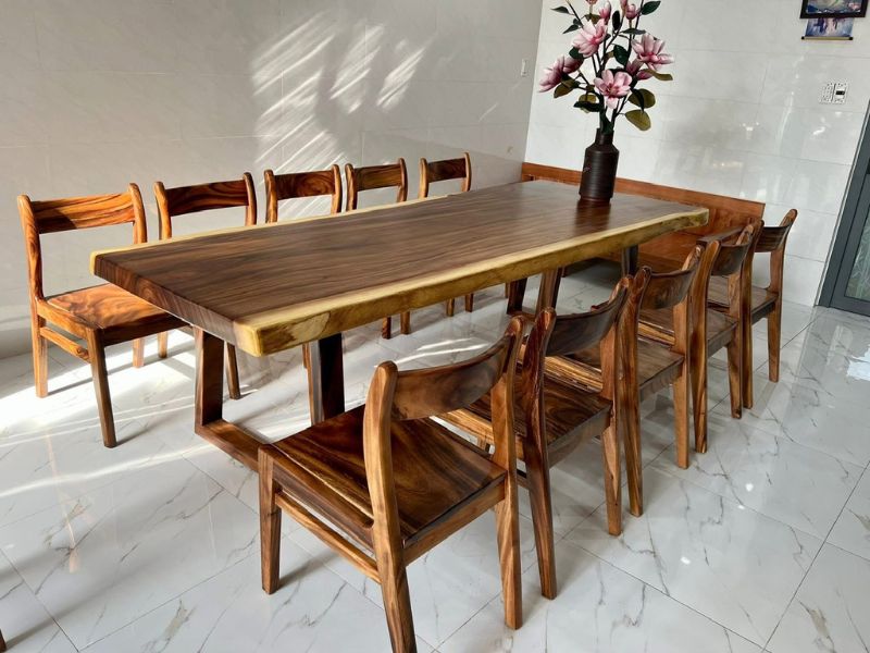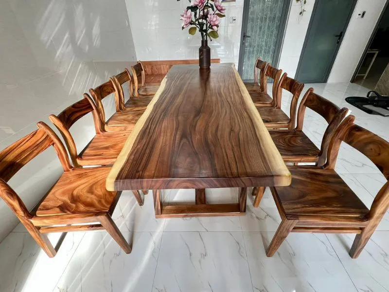 Bộ bàn ghế ăn gỗ tự nhiên 80x12x250cm