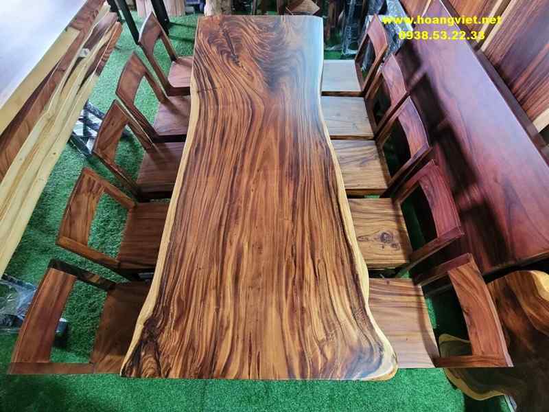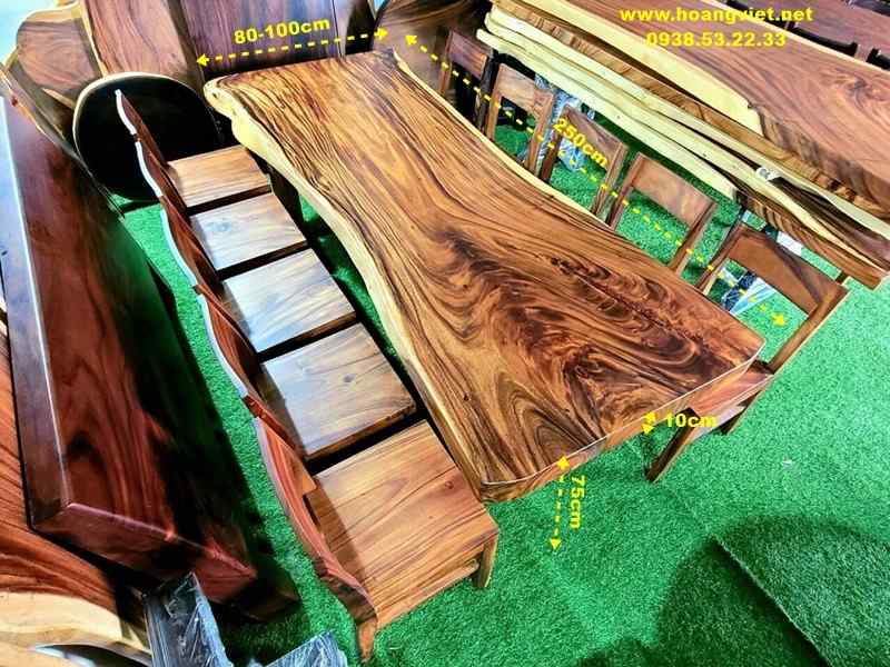 Bàn ghế gỗ gõ đỏ nguyên khối 90x12x250cm
