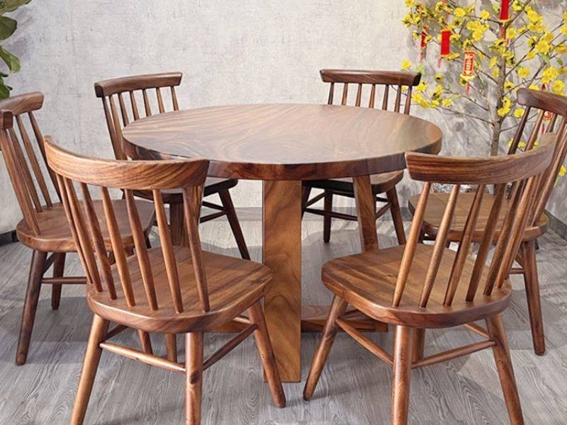 Bàn ăn hình tròn gỗ dổi đá