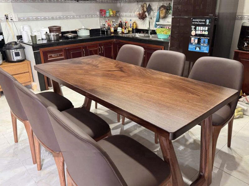 Bàn ăn gỗ me tây 6 ghế bull 75x5x200cm