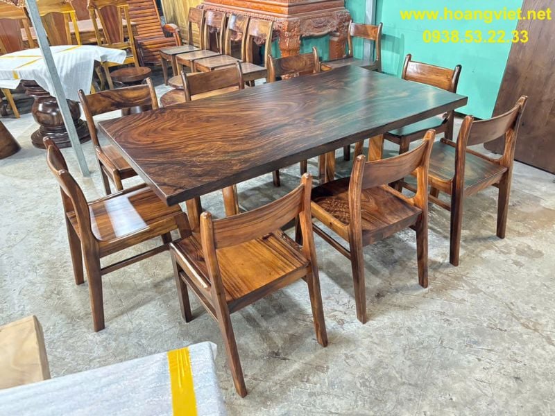 Bàn ghế ăn gỗ me tây 8 người 80x5x230cm