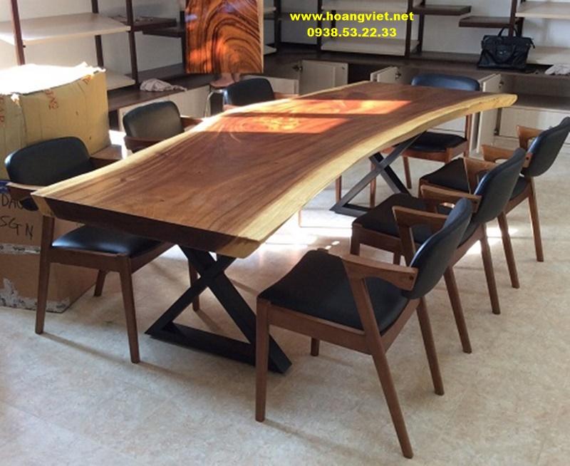 Bàn ăn gỗ me tây nguyên tấm 8 ghế 90x5x220cm