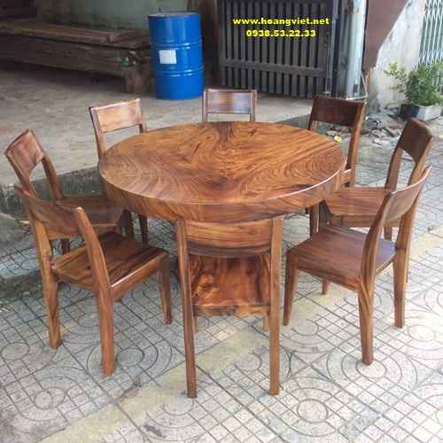 Bộ bàn ăn tròn 8 gỗ me tây nguyên tấm