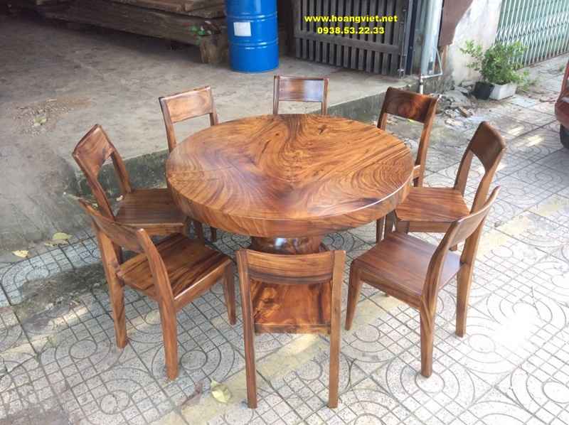 Bàn ăn tròn 8 ghế gỗ me tây nguyên khối