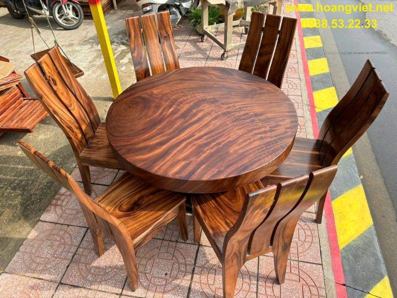 Bàn ghế gỗ còng đường kính 115cm dày 9.5cm