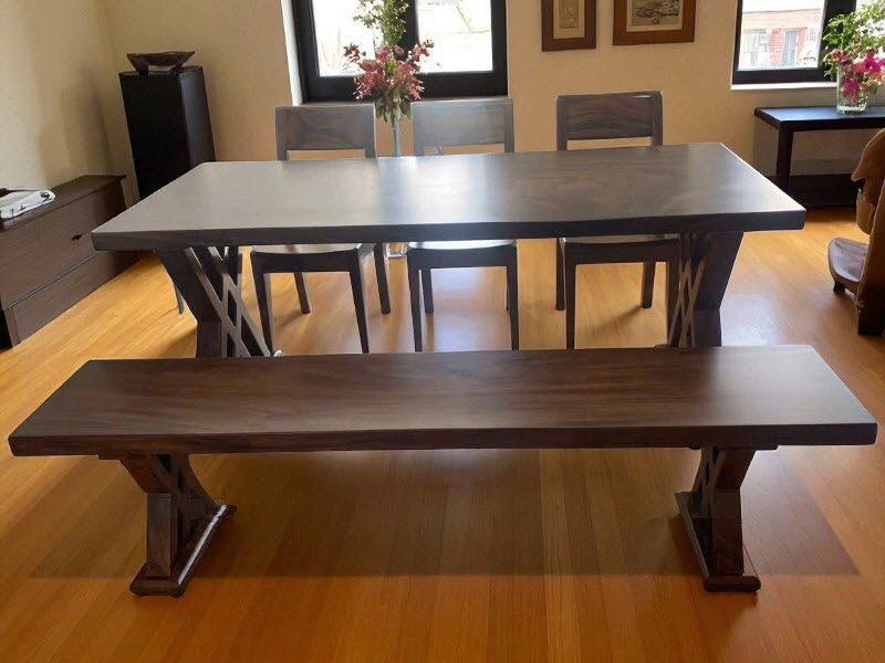 Bàn ăn ghế băng dài gỗ me tây 75x5x220cm