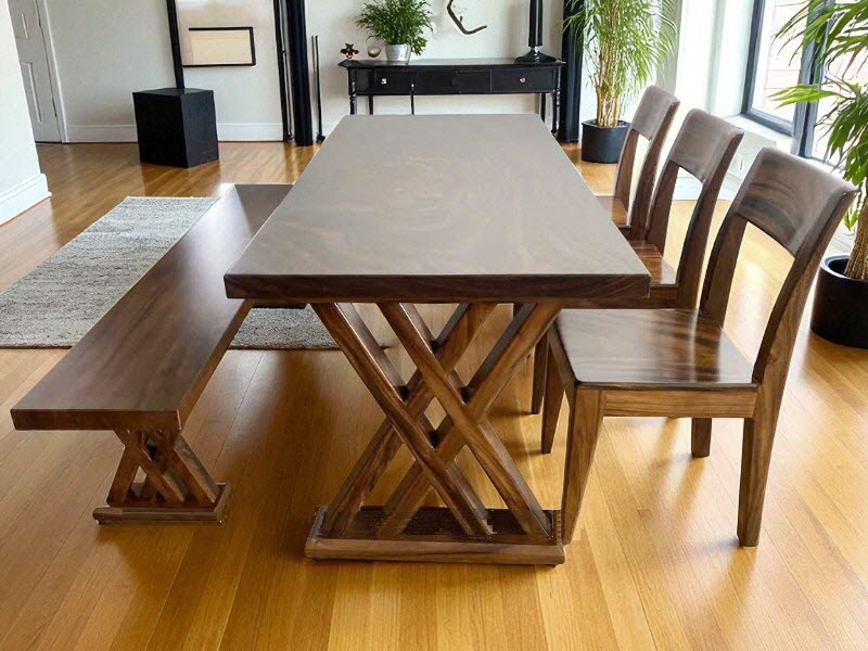Bàn gỗ me tây 2 ghế băng dài