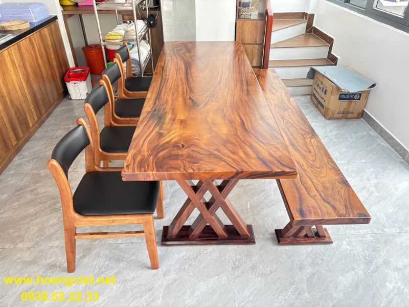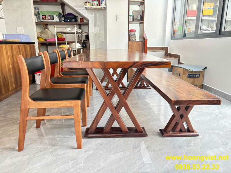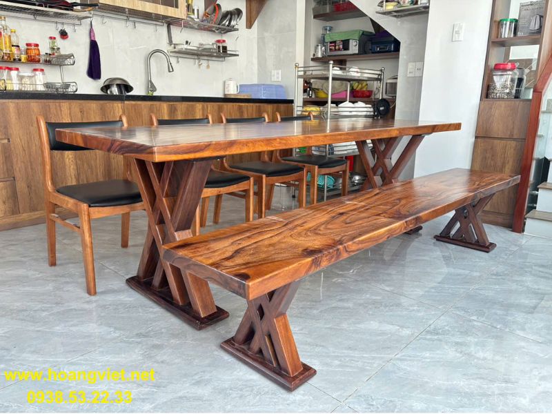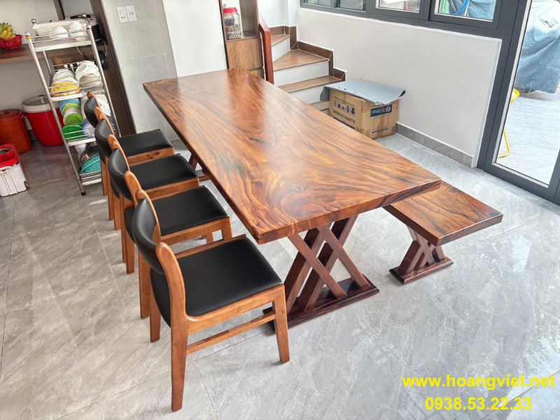 Bàn ăn 6 người ghế băng dài