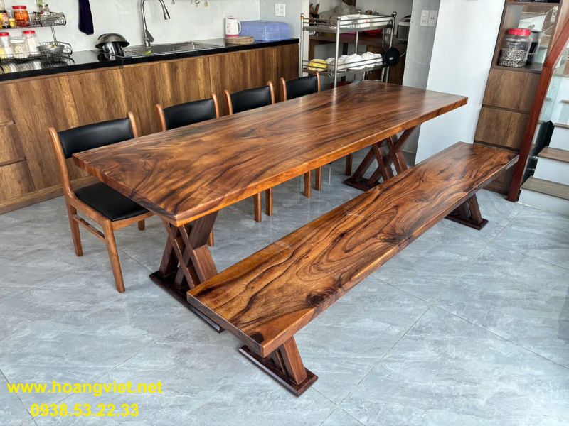 Bàn ăn ghế băng dài 88x7x218cm.
