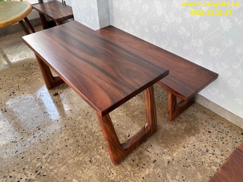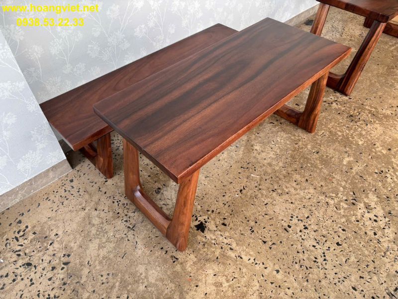 Bàn ăn ghế băng dài gỗ me tây 75x5x220cm