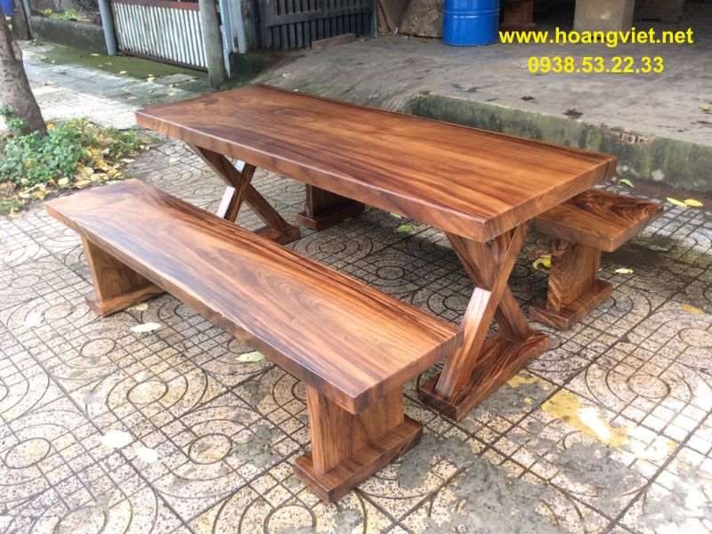 Bàn ghế k3 gỗ me tây (80-90)x12x250cm