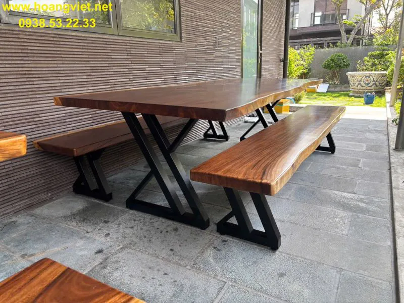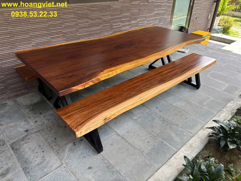 Bàn ghế k3 gỗ me tây (80-90)x12x250cm