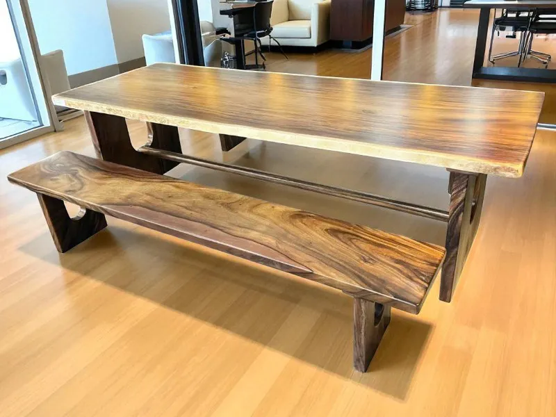 Bàn ghế k3 gỗ me tây cạnh thẳng 65x6x186cm