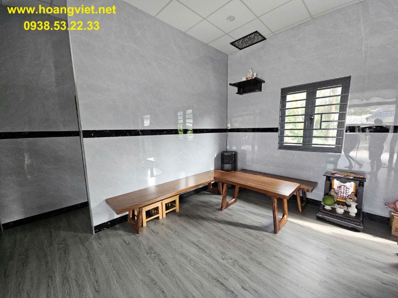 Bàn dài gỗ me tây rộng 1m dày 7cm dài 2m3