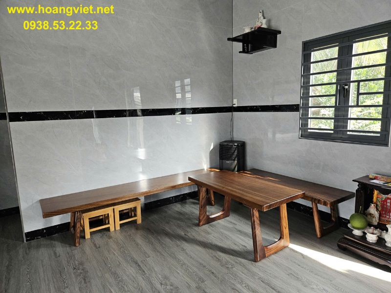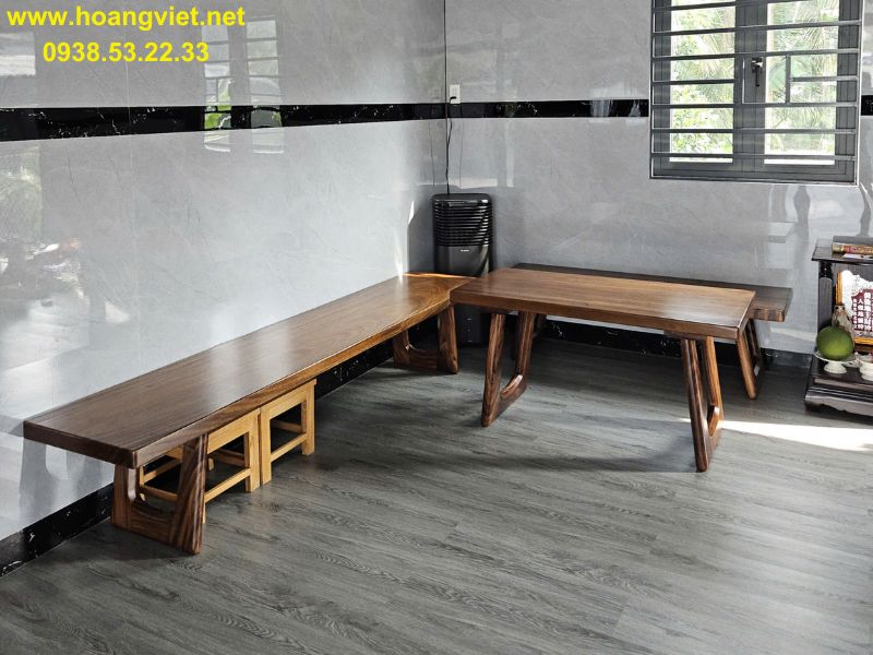 ♦ Về thẩm mỹ, thiết kế đơn giản nhưng tinh gọn giúp sản phẩm dễ dàng kết hợp với nhiều phong cách nội thất khác nhau, từ hiện đại, mộc mạc đến không gian mang hơi hướng thiên nhiên. Bộ bàn không chỉ phục vụ nhu cầu ăn uống, trò chuyện mà còn góp phần tạo điểm nhấn ấm cúng, tăng tính kết nối giữa các thành viên. Với sự cân bằng giữa công năng, độ bền và vẻ đẹp tự nhiên, bàn gỗ me tây 2 ghế băng dài là lựa chọn thông minh cho không gian sống và kinh doanh hiện đại.