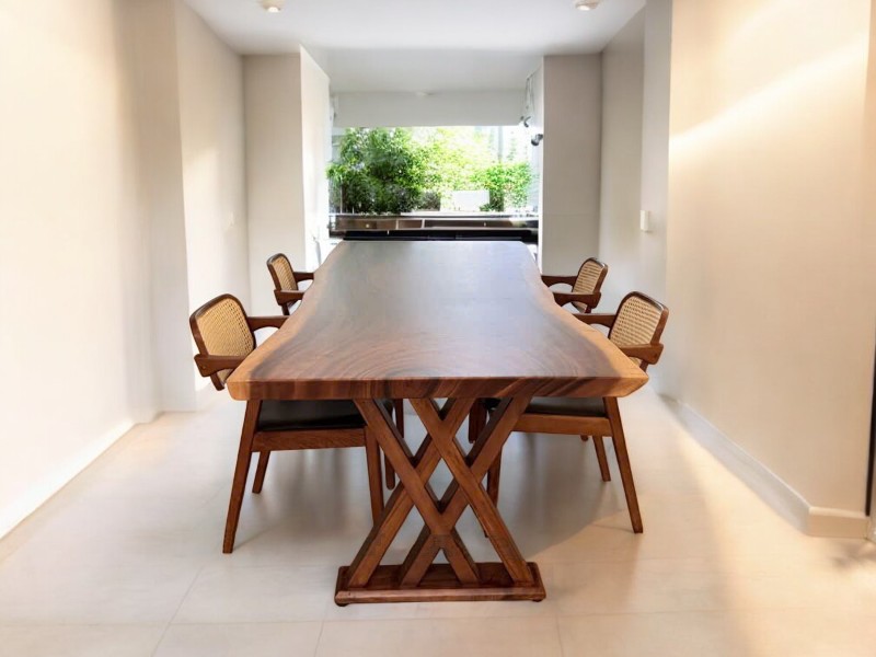 Bàn dài gỗ me tây rộng 1m dày 7cm dài 2m3