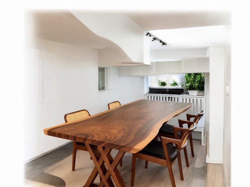 Bàn gỗ me tây ghép 2 tấm (140-180)x5x300cm