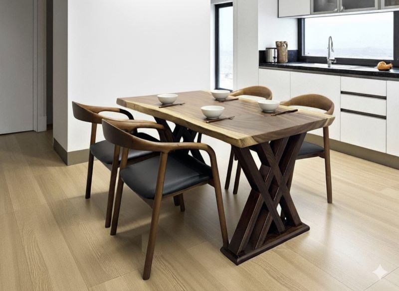 Bàn ăn bằng gỗ me tây (81-95cm)x5x150cm