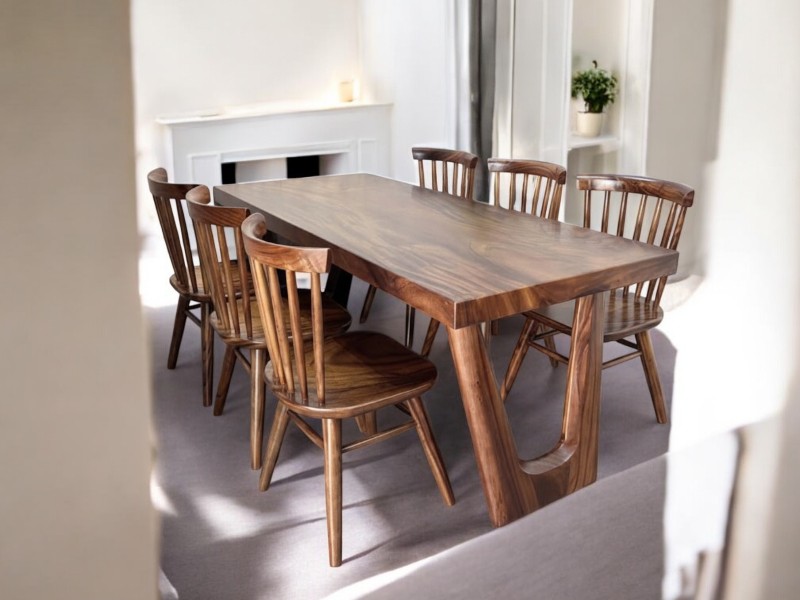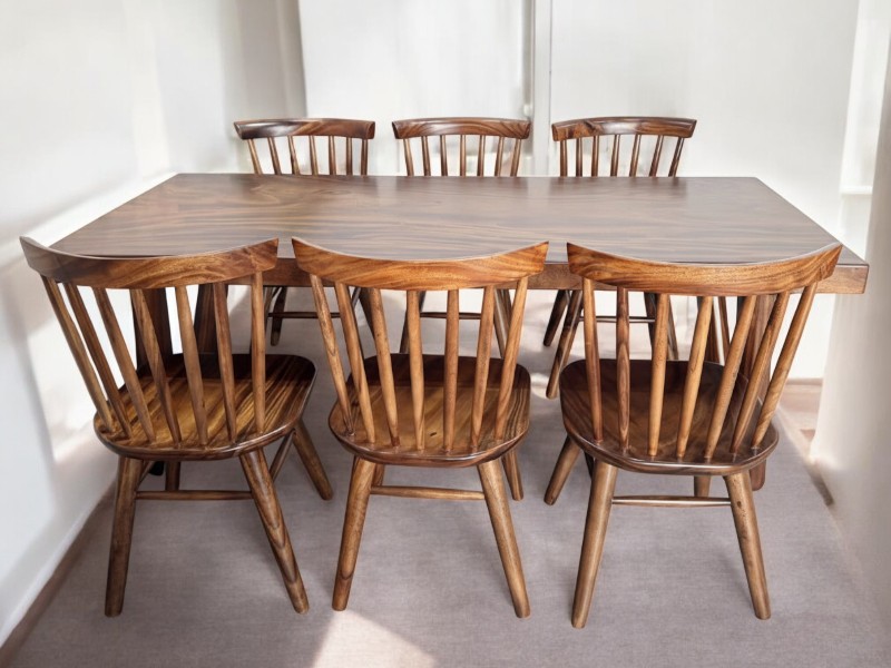 Bàn gỗ me tây 6 ghế mango 80x5x200cm
