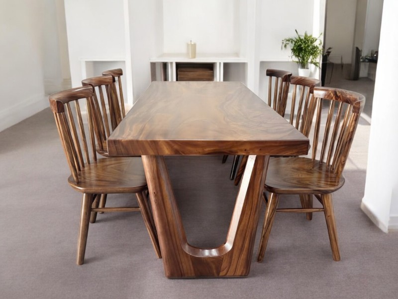 Bàn ăn gỗ tự nhiên me tây 8 ghế 94x7x230cm