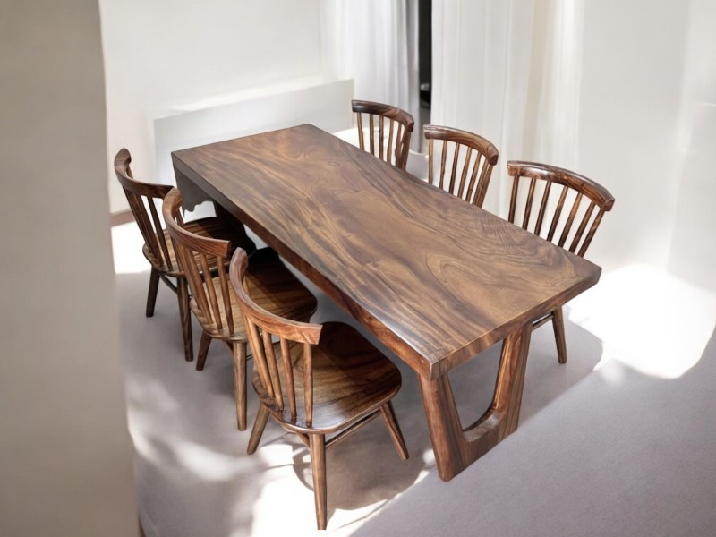 Bàn ăn gỗ me tây nguyên tấm 6 ghế hiroshima (70-80)x5x180cm