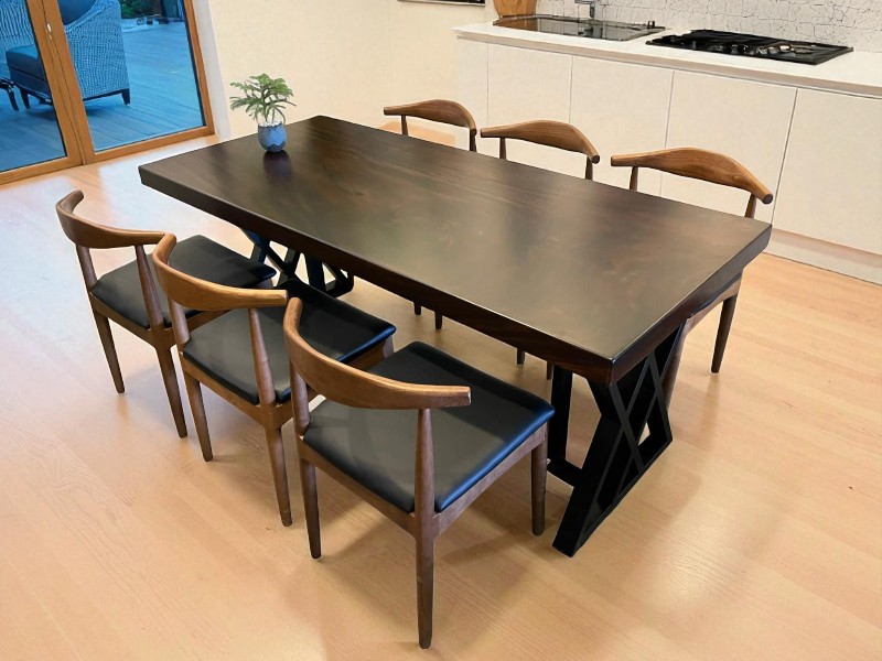 Bàn ăn gỗ me tây 6 ghế bull 75x5x200cm