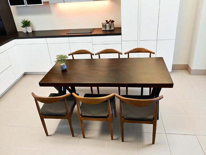 Bàn ăn gỗ me tây 6 ghế hiện đại 80x5x200cm