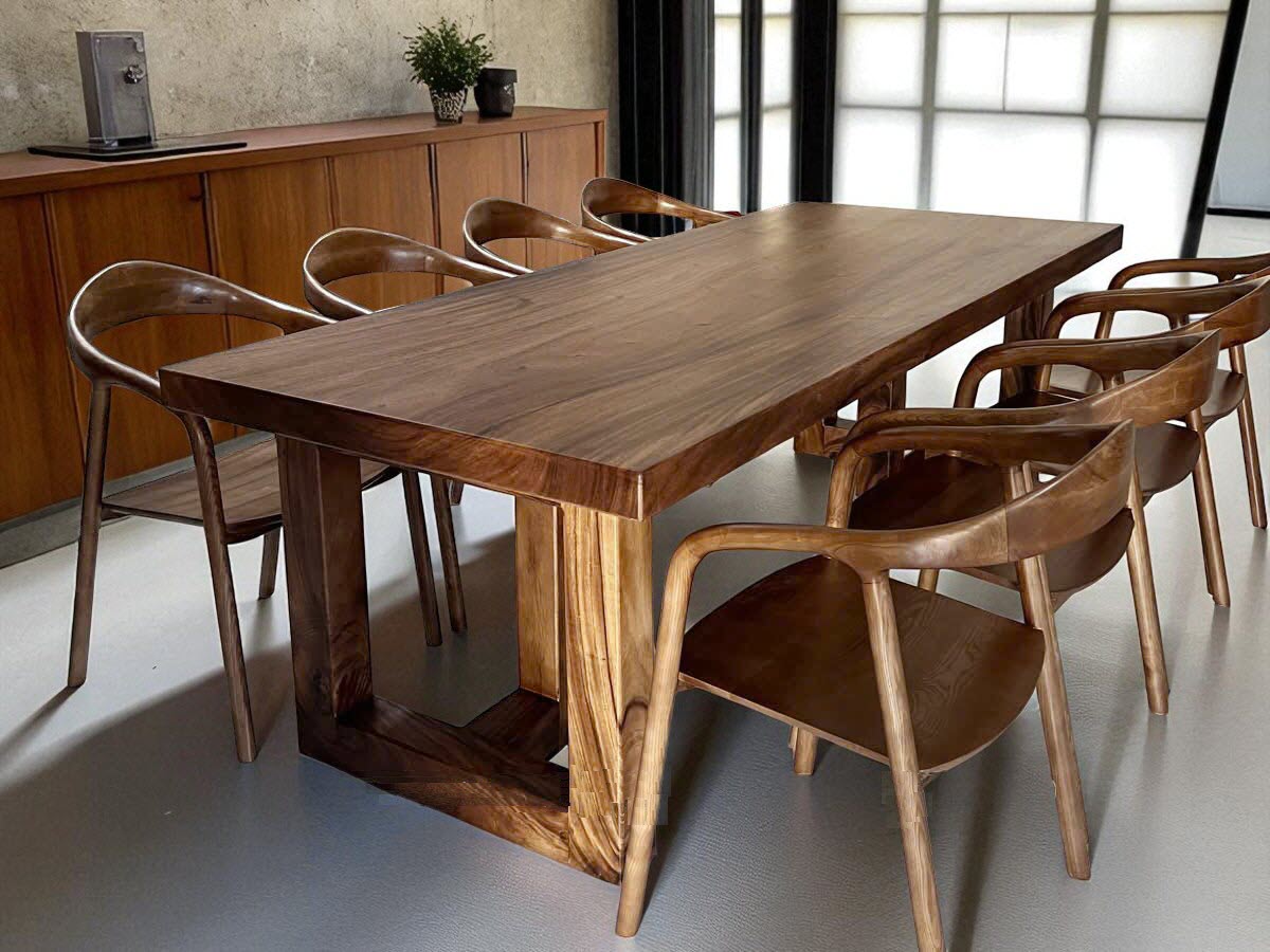 Bàn ăn gỗ tự nhiên me tây 8 ghế 94x7x230cm
