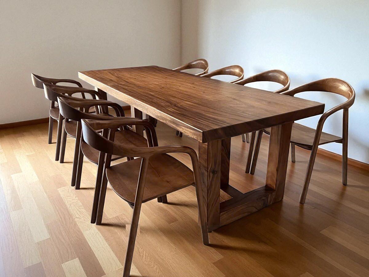 Bàn ăn gỗ me tây 8 ghế katakana 80x5x250cm