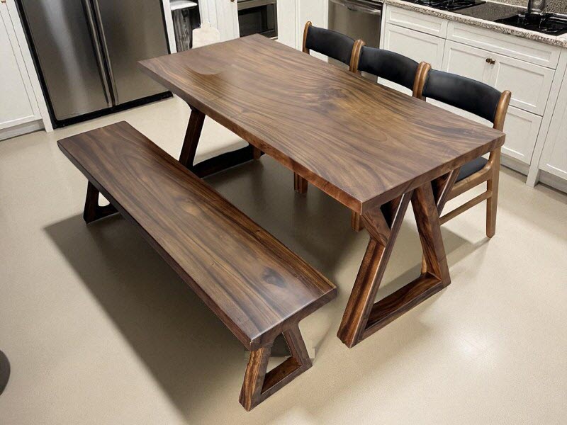 Bàn ăn bằng gỗ me tây (81-95cm)x5x150cm