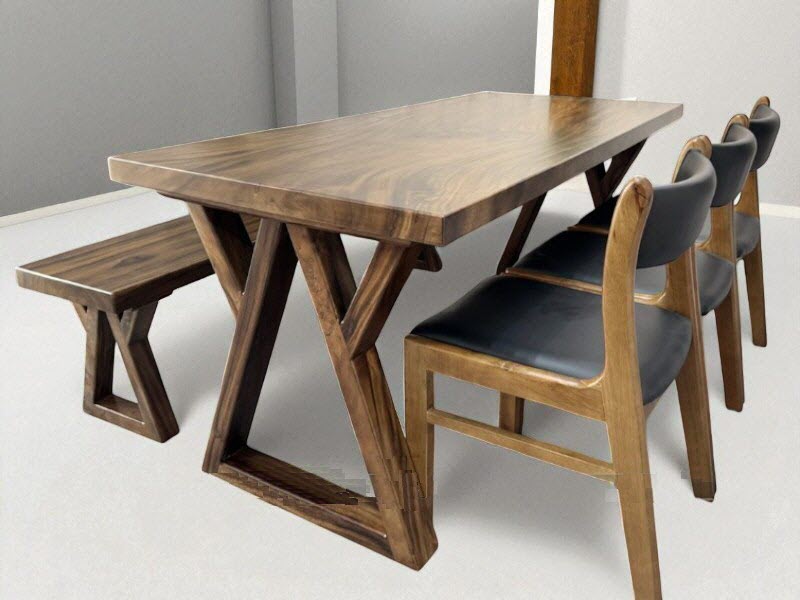 ♦ Điểm đặc biệt của mẫu bàn này ở thiết kế chân bàn hình chữ A chắc chắn, cân đối, giúp tăng khả năng chịu lực và mang lại sự vững chãi trong quá trình sử dụng. Kết hợp cùng mặt bàn nguyên khối, sản phẩm không chỉ đẹp về thẩm mỹ mà còn bền bỉ theo thời gian. Gỗ me tây vốn nổi tiếng với độ bền cao, khả năng chống mối mọt, ít cong vênh, giúp bàn giữ được vẻ đẹp sang trọng trong nhiều năm liền.