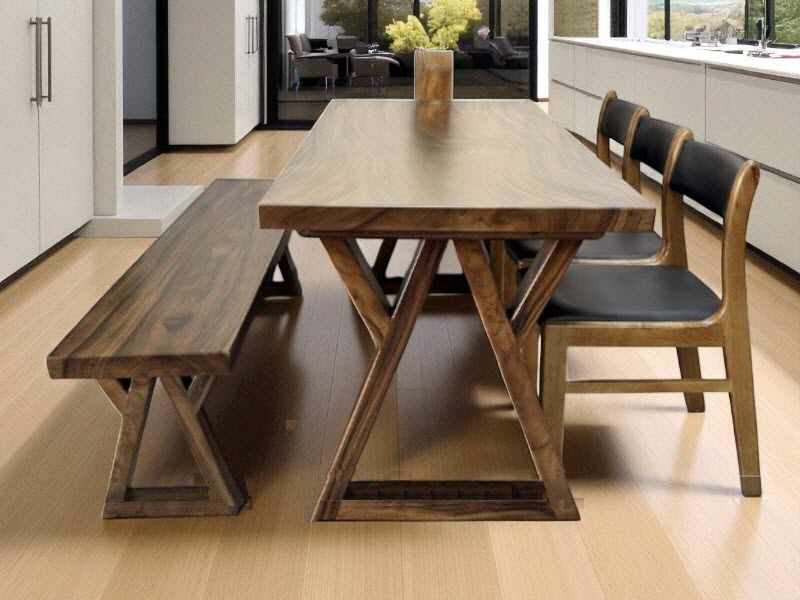 Bàn ăn ghế băng dài gỗ me tây 75x5x220cm
