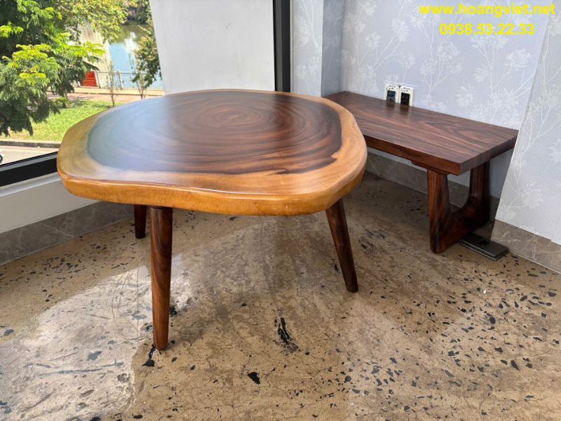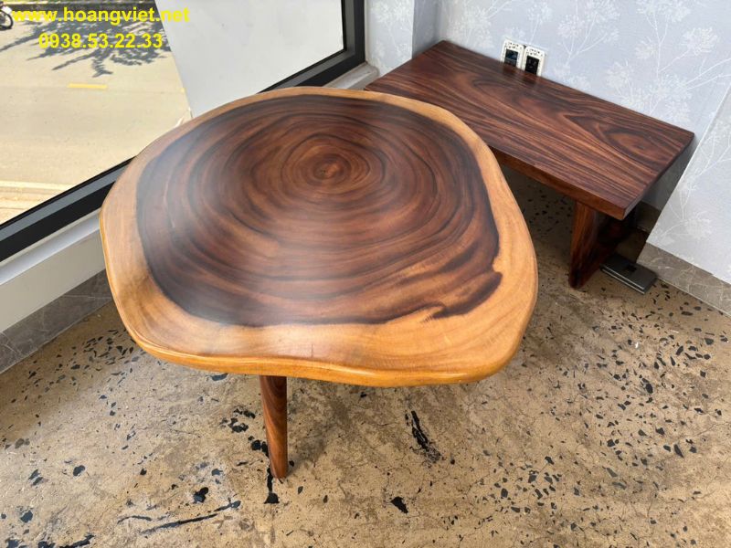 Bàn sofa đôi tròn tự nhiên gỗ me tây