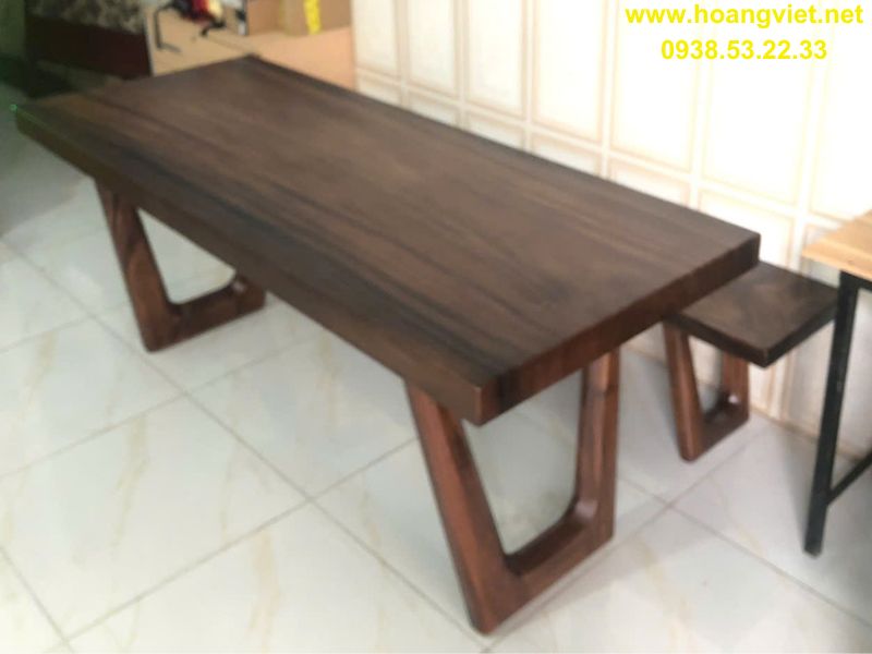 Bàn dài gỗ me tây rộng 1m dày 7cm dài 2m3