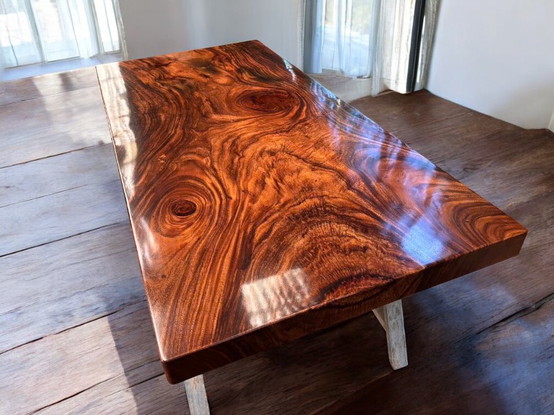 Bàn gỗ me tây nguyên khối vân đẹp là lựa chọn lý tưởng cho những ai yêu thích vẻ đẹp mộc mạc nhưng vẫn sang trọng và đẳng cấp. Sản phẩm được chế tác từ một tấm gỗ me tây nguyên khối liền mạch, giữ trọn đường vân lớn uốn lượn tự nhiên cùng sắc nâu trầm ấm đầy cuốn hút.