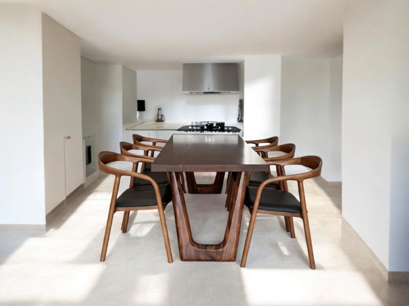 Bàn ăn gỗ me tây 8 ghế bull 77x9.5x212cm