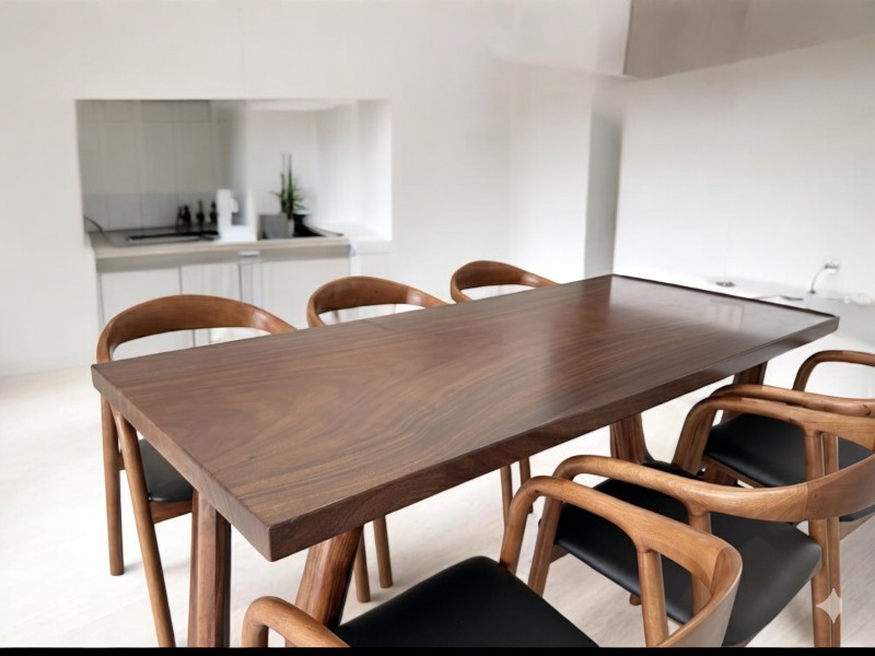 Bàn ăn gỗ me tây 8 ghế katakana 80x5x250cm