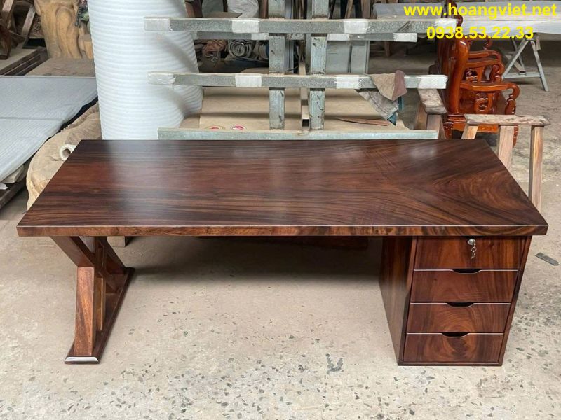 Bàn làm việc gỗ me tây có hộc tủ 60x5x250cm