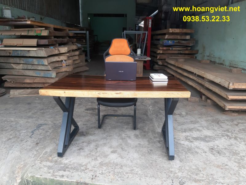 Bàn làm việc gỗ me tây tự nhiên theo phong cách đơn giản