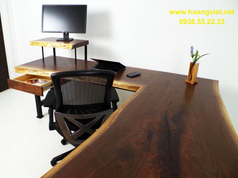Bàn làm việc chữ L gỗ nguyên tấm