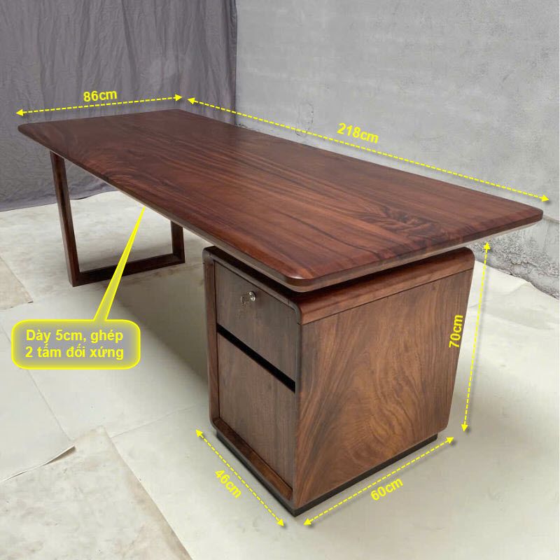 Bàn làm việc 2 hộc tủ gỗ tự nhiên 70x5x200cm