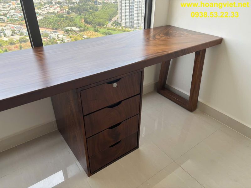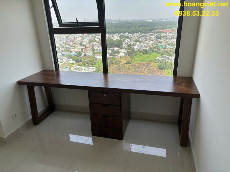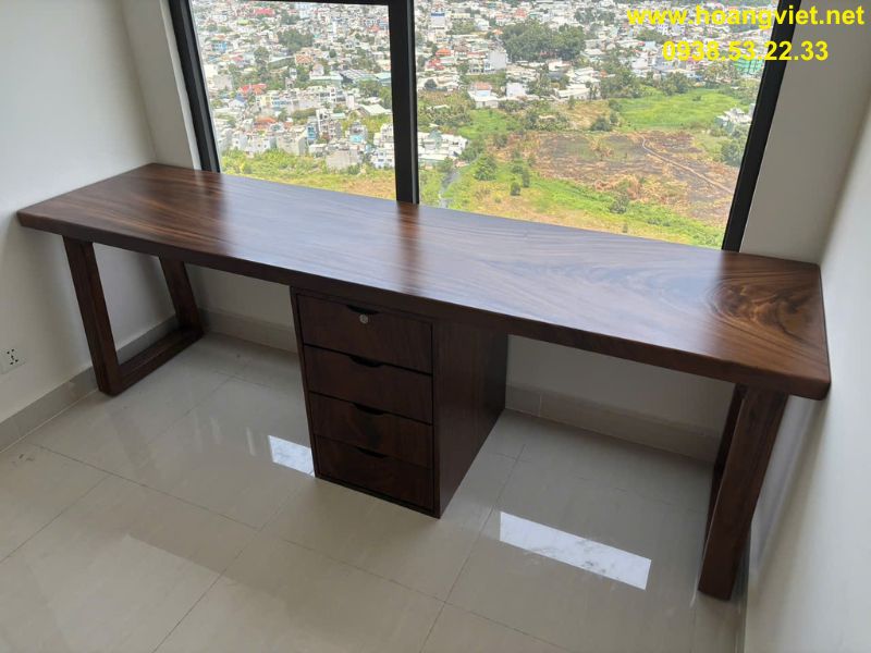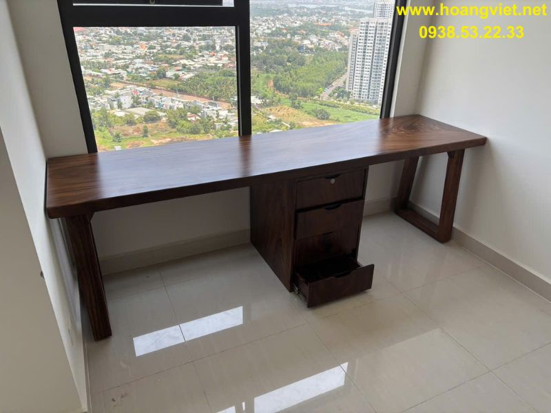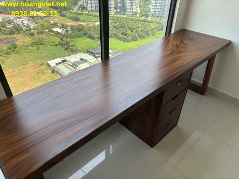 Bàn làm việc gỗ me tây có hộc tủ 60x5x250cm