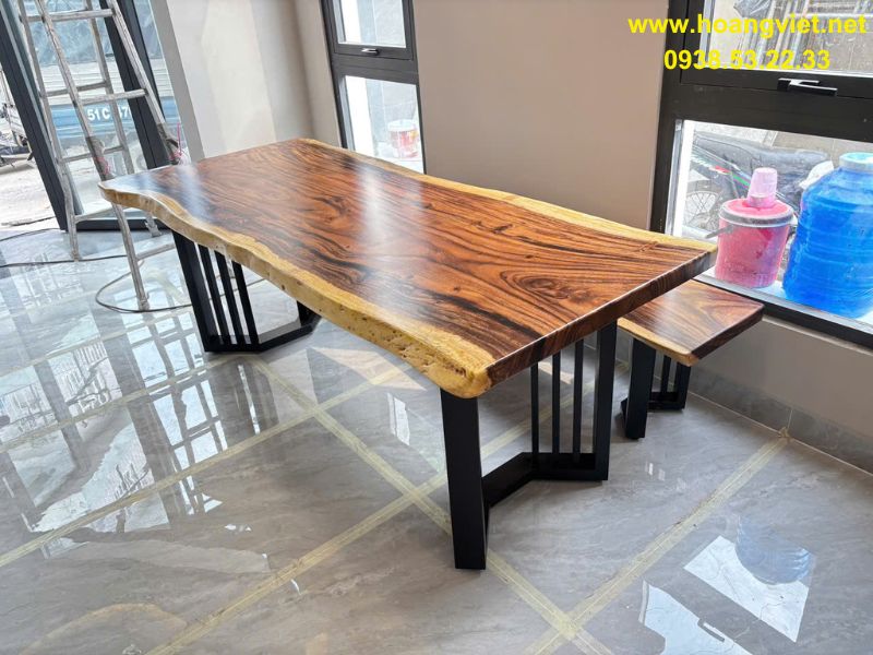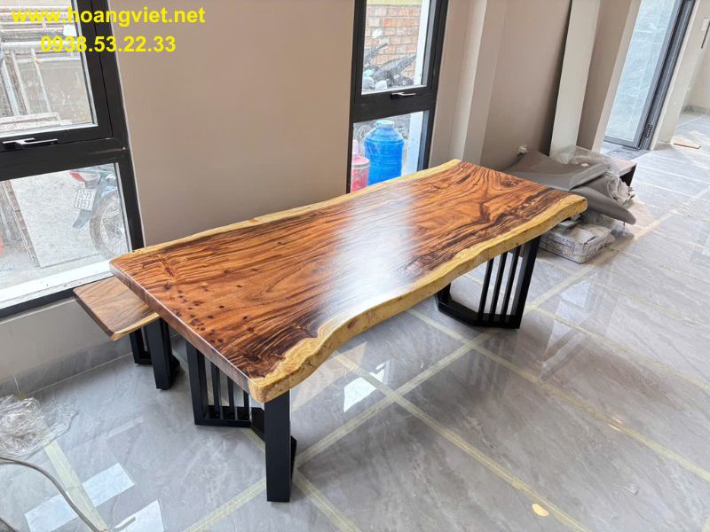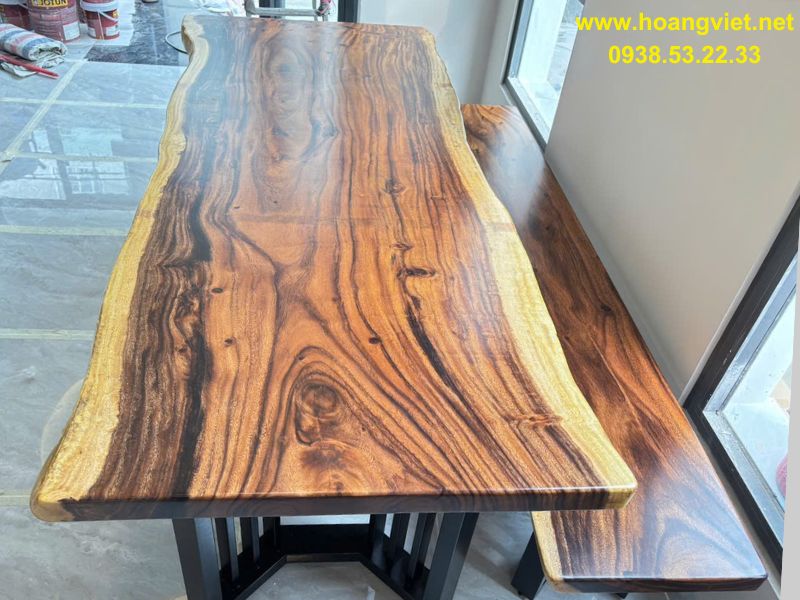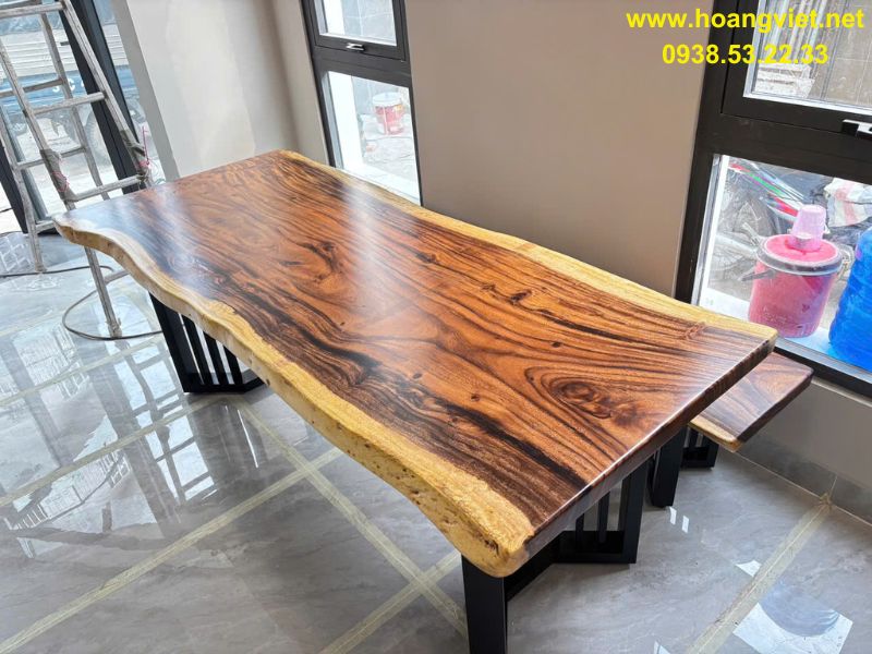 Bàn dài gỗ me tây rộng 1m dày 7cm dài 2m3