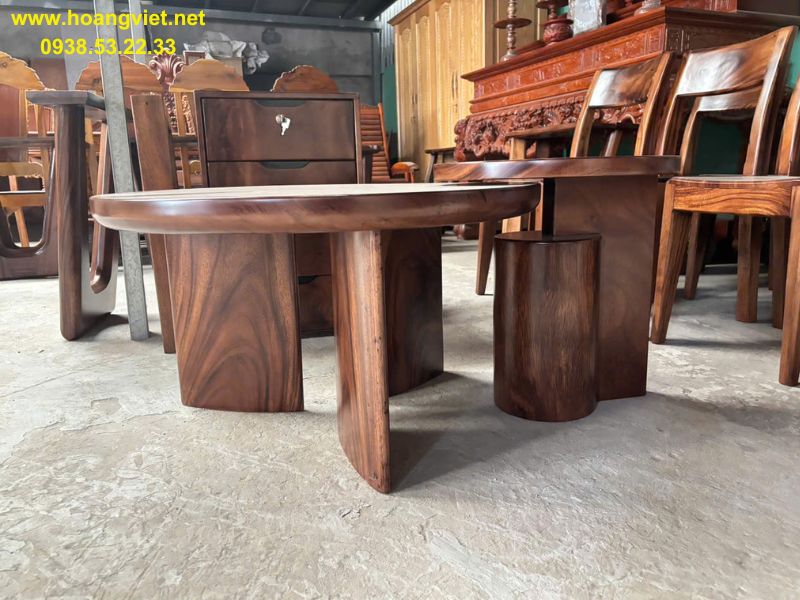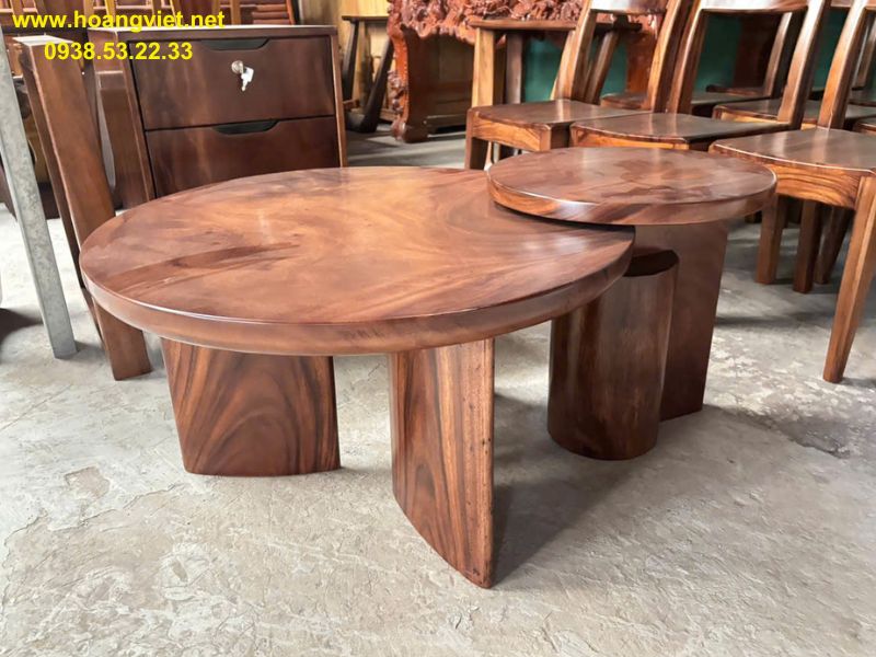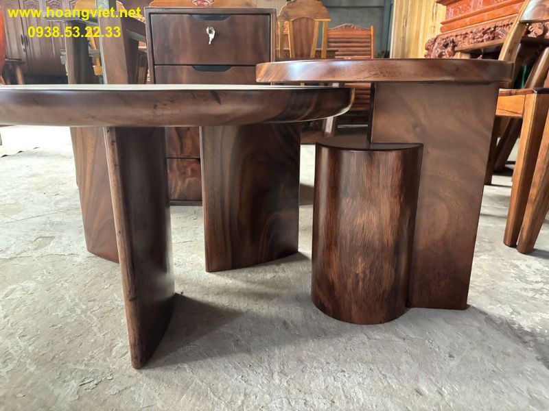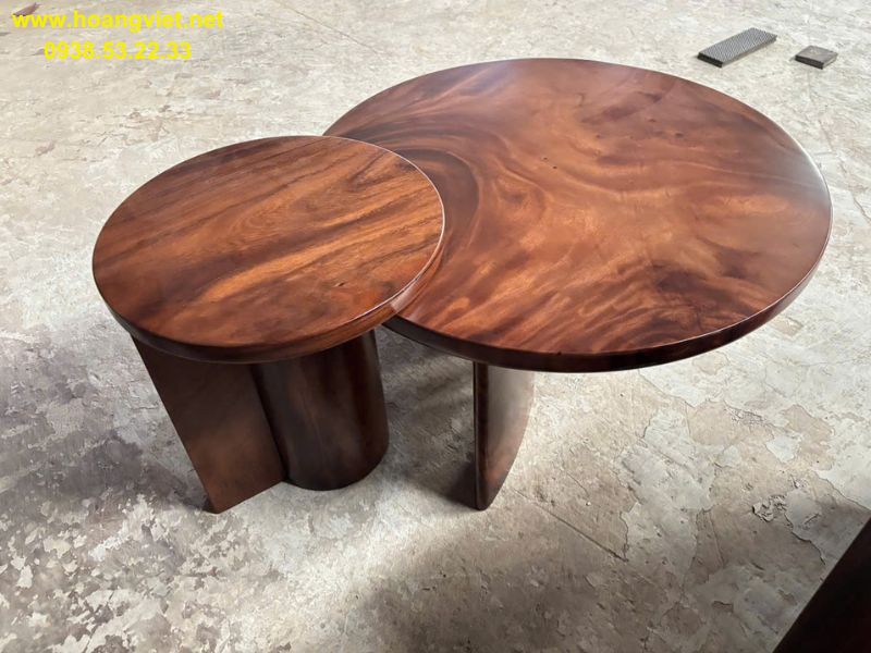 Bàn sofa đôi tròn tự nhiên gỗ me tây