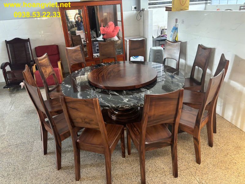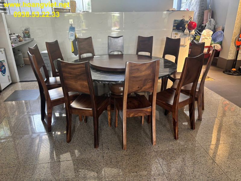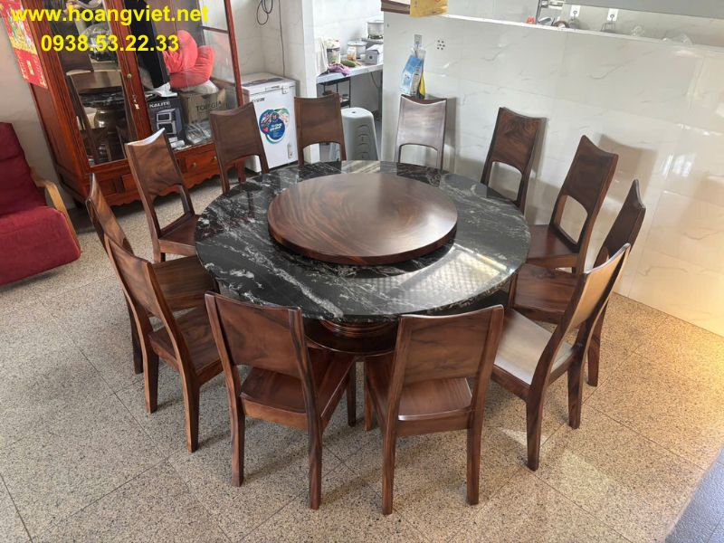 Bàn ăn tròn 10 ghế đường kính 1m68 dày 15cm