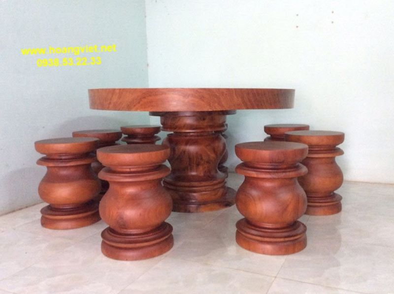 Mẫu bàn tròn 08 đôn gỗ cẩm lai nguyên khối