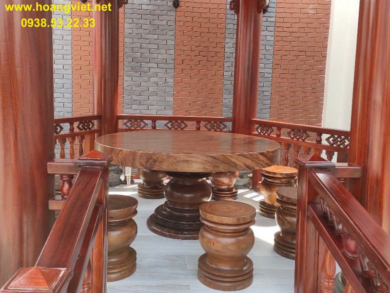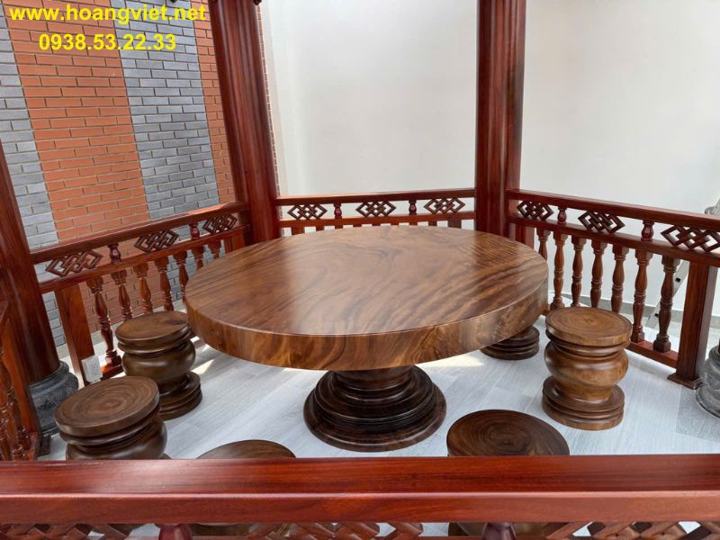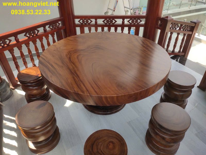 Bàn tròn gỗ hương đường kính 1m2 dày 14cm