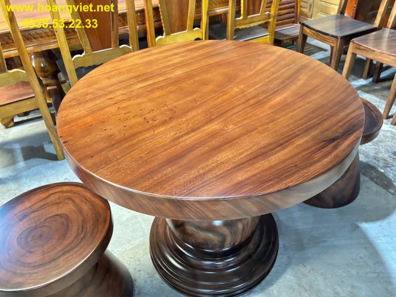 Bàn ăn tròn 4 ghế gỗ me tây đk 1m dày 5cm
