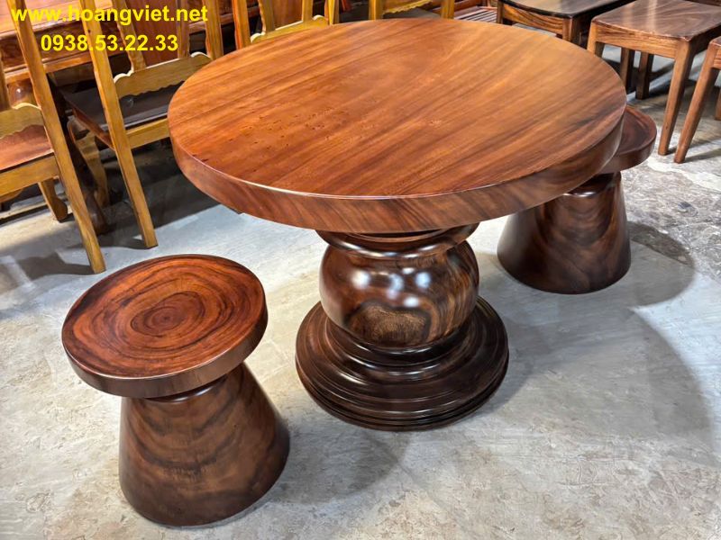 Bàn tròn gỗ cẩm lai đường kính 1m3 dày 12cm