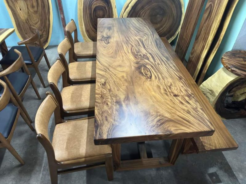 Bàn ăn 8 ghế gỗ tự nhiên 80x7x214cm